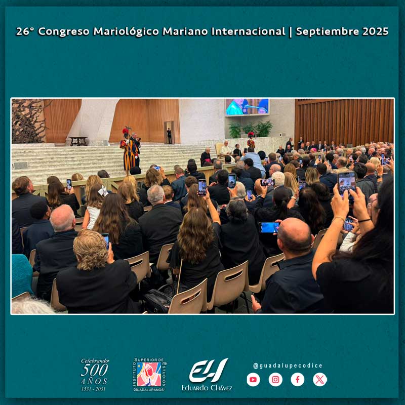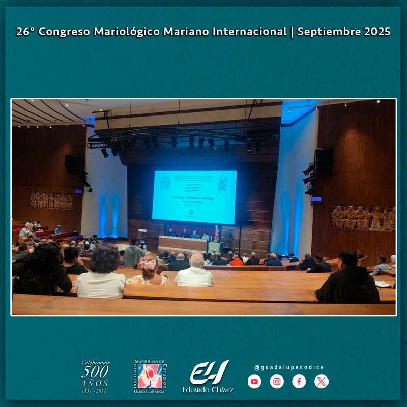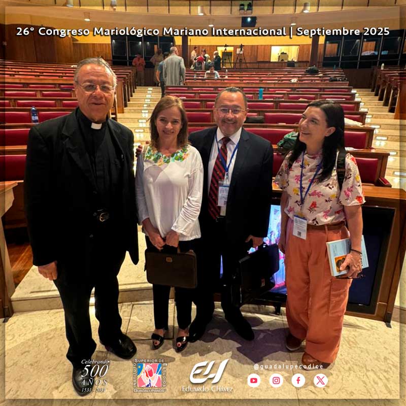 El padre Eduardo Chávez, director del Instituto Superior de Estudios Guadalupanos y canónigo de la Basílica de Guadalupe, participó en el 26 Congreso Internacional Mariológico Mariano en Roma, donde presentó una ponencia sobre la Virgen de Guadalupe como modelo universal de evangelización y símbolo de unidad que trasciende culturas, lenguas y credos.