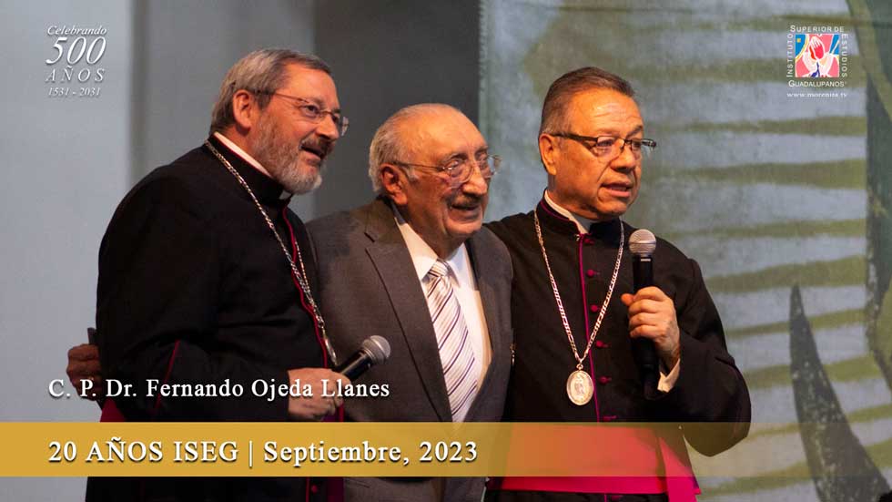 Cada momento de estos 20 Años ha sido posible gracias a la libre respuesta y a la incansable responsabilidad de nuestro Director General, nuestro maestro y guía: Mons. Eduardo Chávez, Doctor en Historia de la Iglesia, Canónigo de la Basílica de Guadalupe pero sobre todo un Sacerdote lleno de celo por Dios y Nuestra Madre de Guadalupe, lleno de amor incansable por transmitir y por formar a quienes aman, a quienes buscan y quienes confían en Ella como Madre del Verdaderísimo Dios por quien se vive.